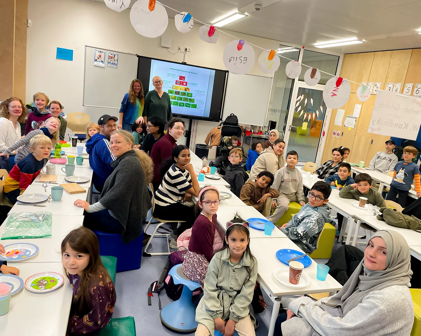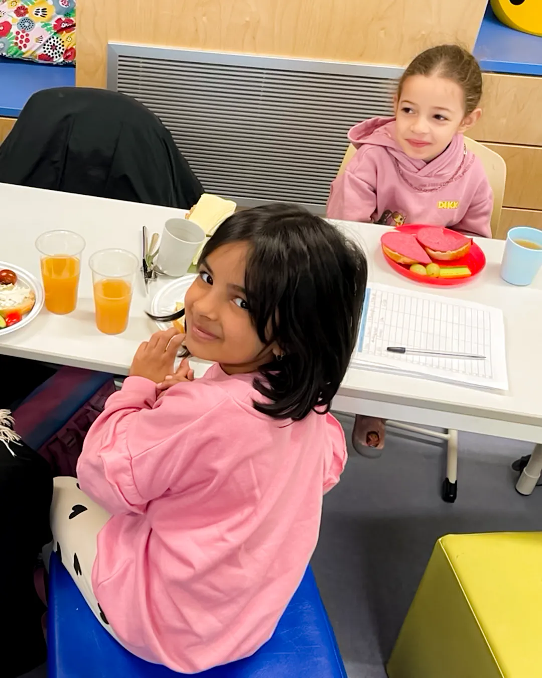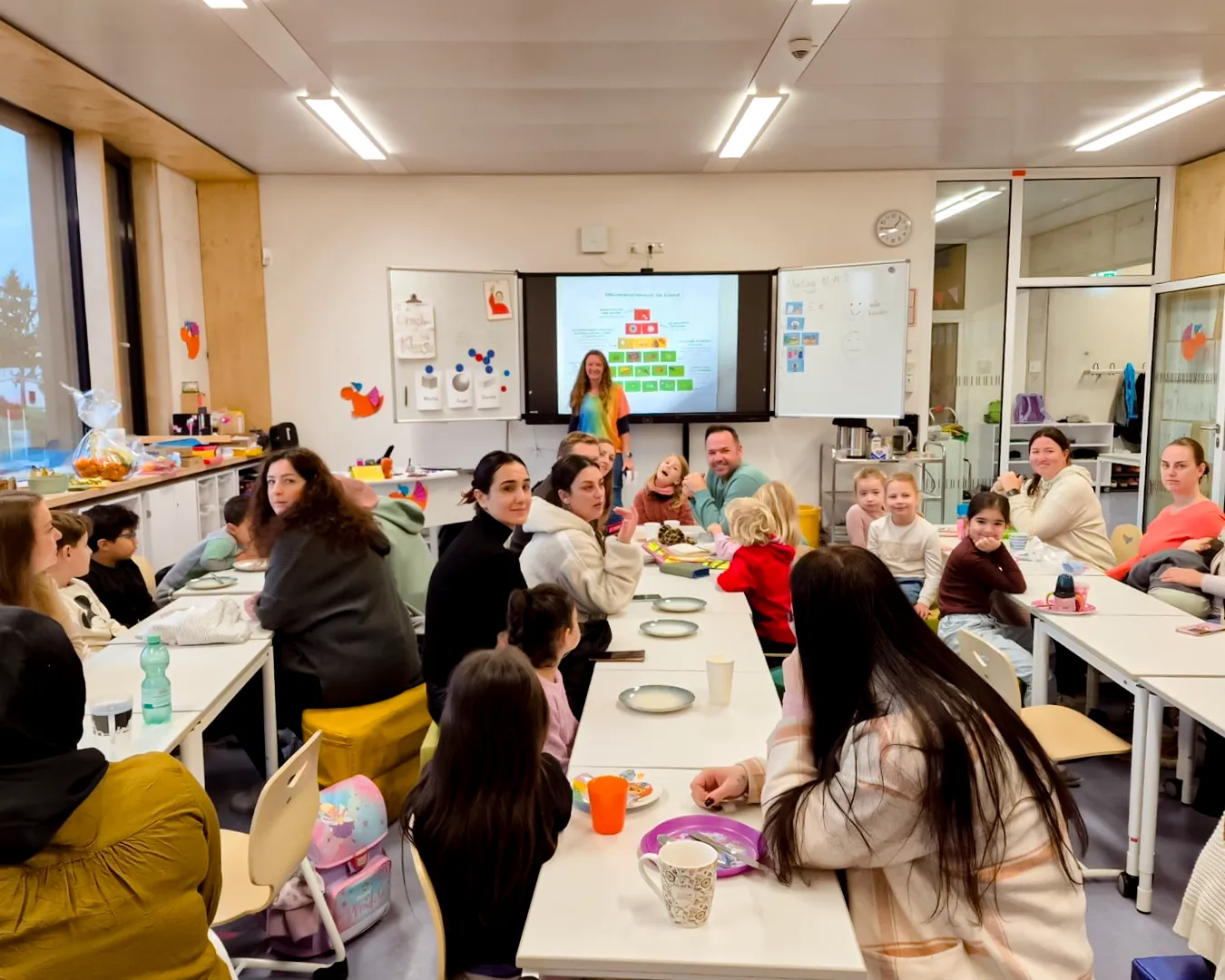 Zur Unterrichtseinheit gehört auch ein praktischer Teil: ein gemeinsames Frühstück in der Klasse. Die Eltern brachten verschiedene Frühstücksangebote mit, die Kinder konnten auswählen, probieren und vergleichen. So wurde aus theoretischem Wissen eine konkrete Erfahrung – inklusive der Erkenntnis, dass ein Frühstück nicht zwingend süß sein muss, um zu schmecken. Im Anschluss wurde gemeinsam gebastelt, sodass auch die kreativen Hände nicht zu kurz kamen.
