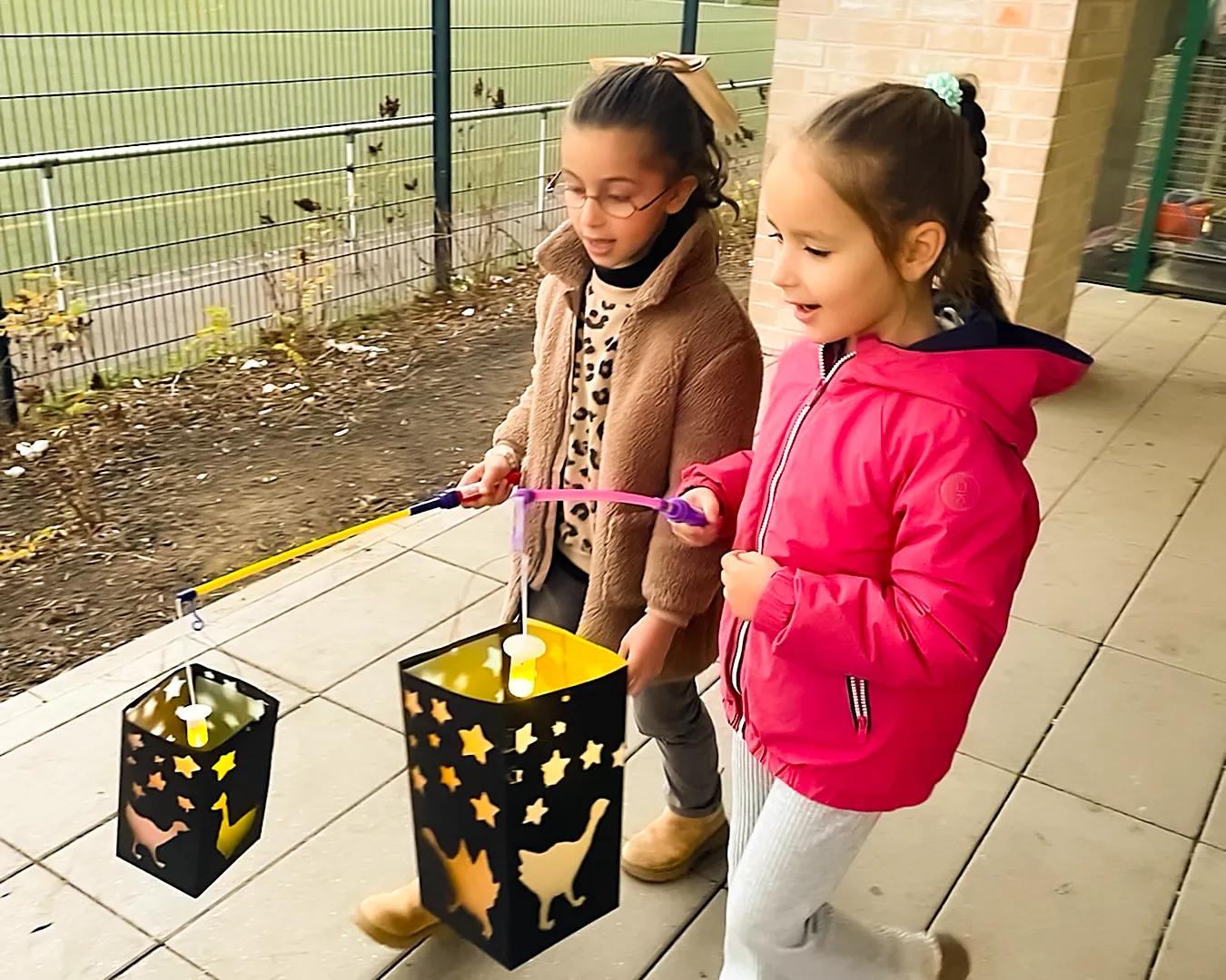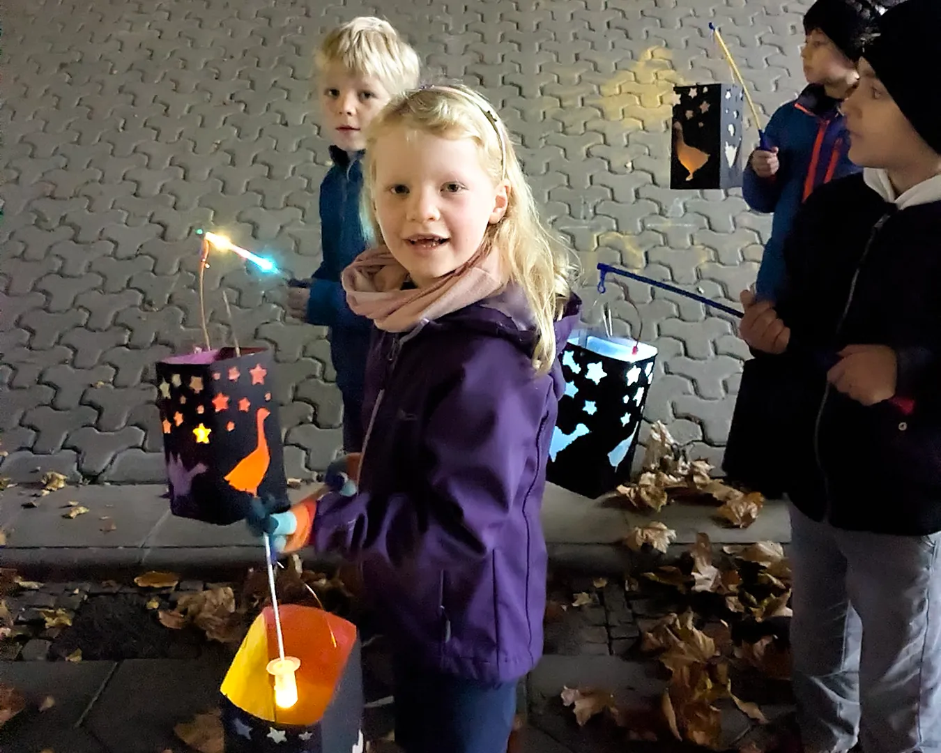 Die Laternen sind immer der erste Auftakt in die dunkle Jahreszeit und künden von dem Lichterglanz, der sich nun nach und nach, durch winterliche Deko und weihnachtliche Lichterketten in der Schule ausbreiten wird. Wir sind bereit. Winter, du kannst kommen (aber vergiss bitte die Geschenke nicht!).