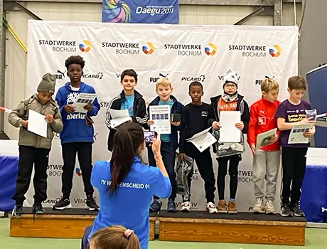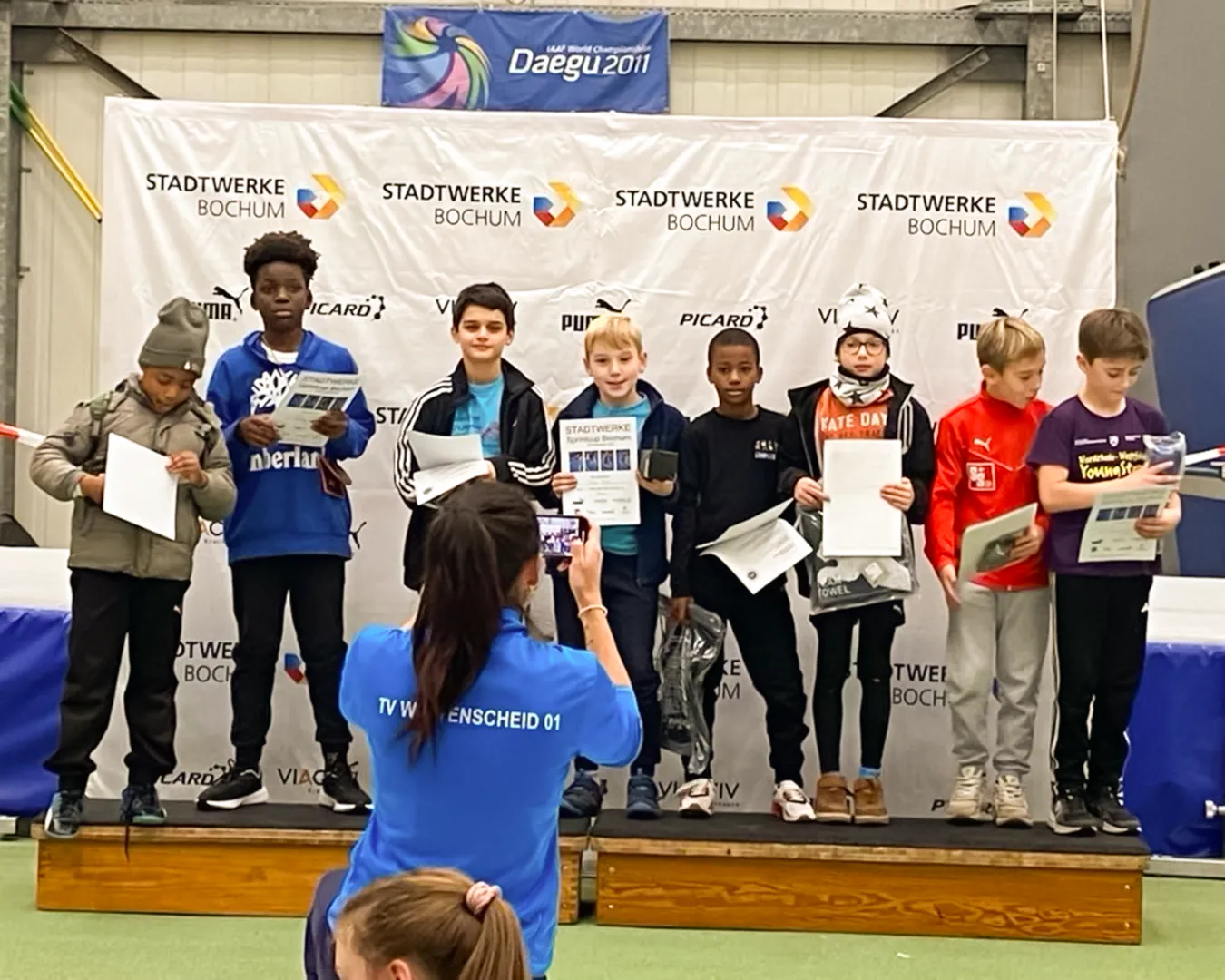 Auf dem Programm stand für alle Teilnehmenden zunächst ein 30-Meter-Sprint. Die jeweils schnellsten 16 Kinder eines Jahrgangs qualifizierten sich für die Endläufe. Hier erreichte Aaron im Jahrgang 2015 den 7. Platz, Oday belegte im Jahrgang 2016 den 8. Platz. Ergänzt wurde der Wettkampf durch Standweitsprung und Medizinballstoßen – Disziplinen, bei denen neben Schnelligkeit auch Kraft und Koordination gefragt waren.