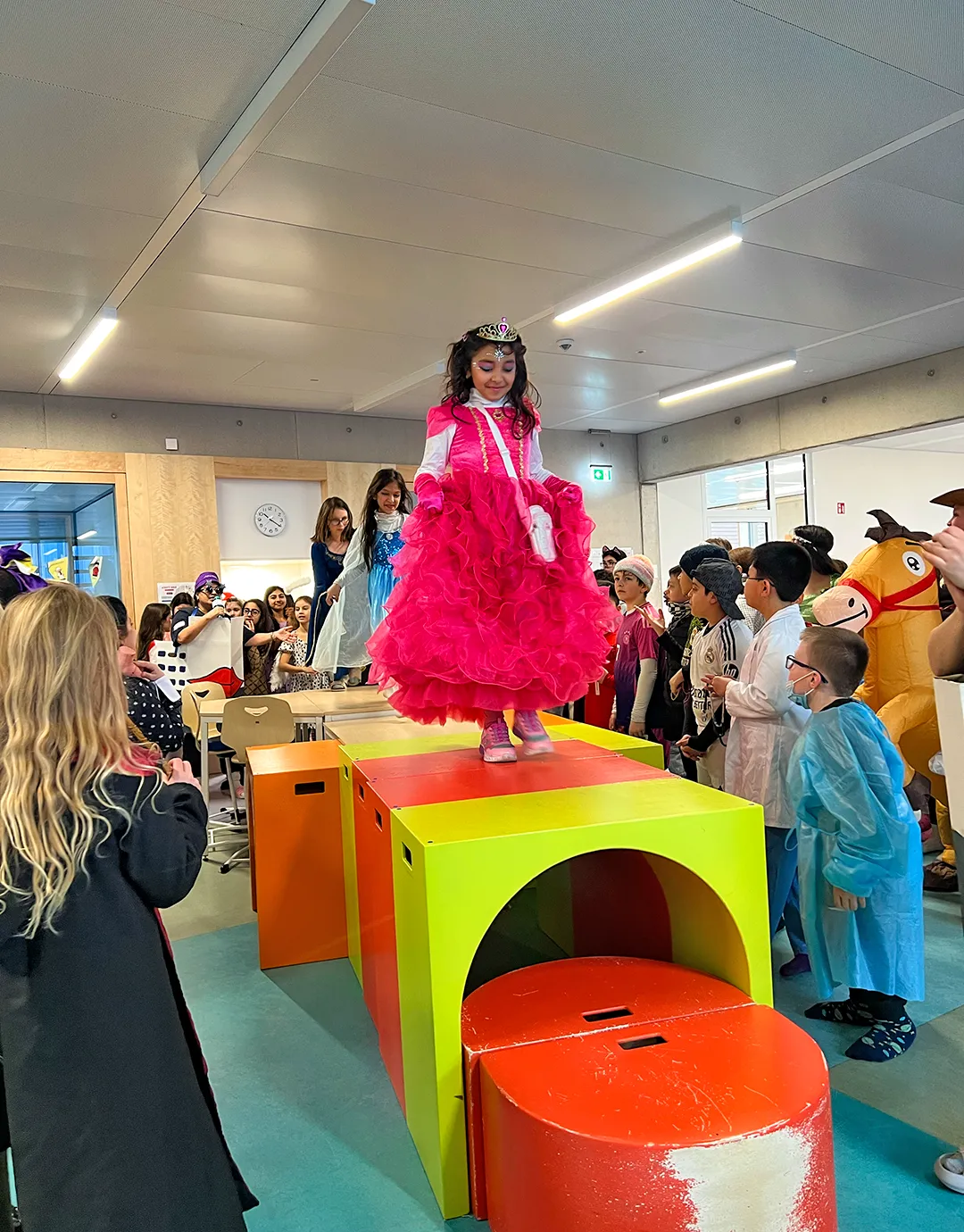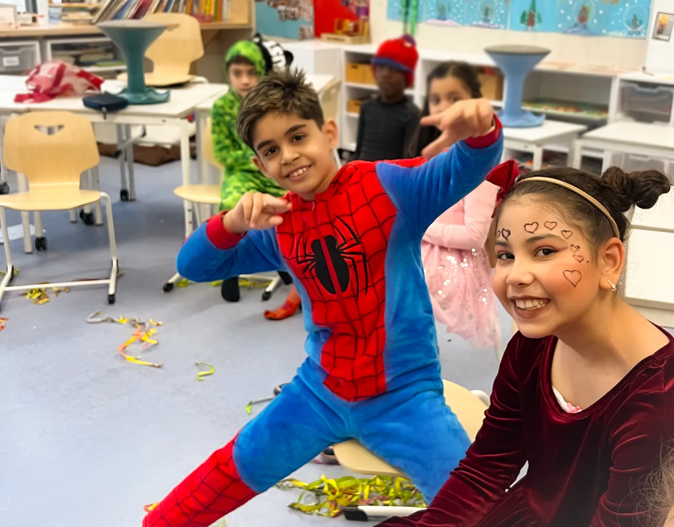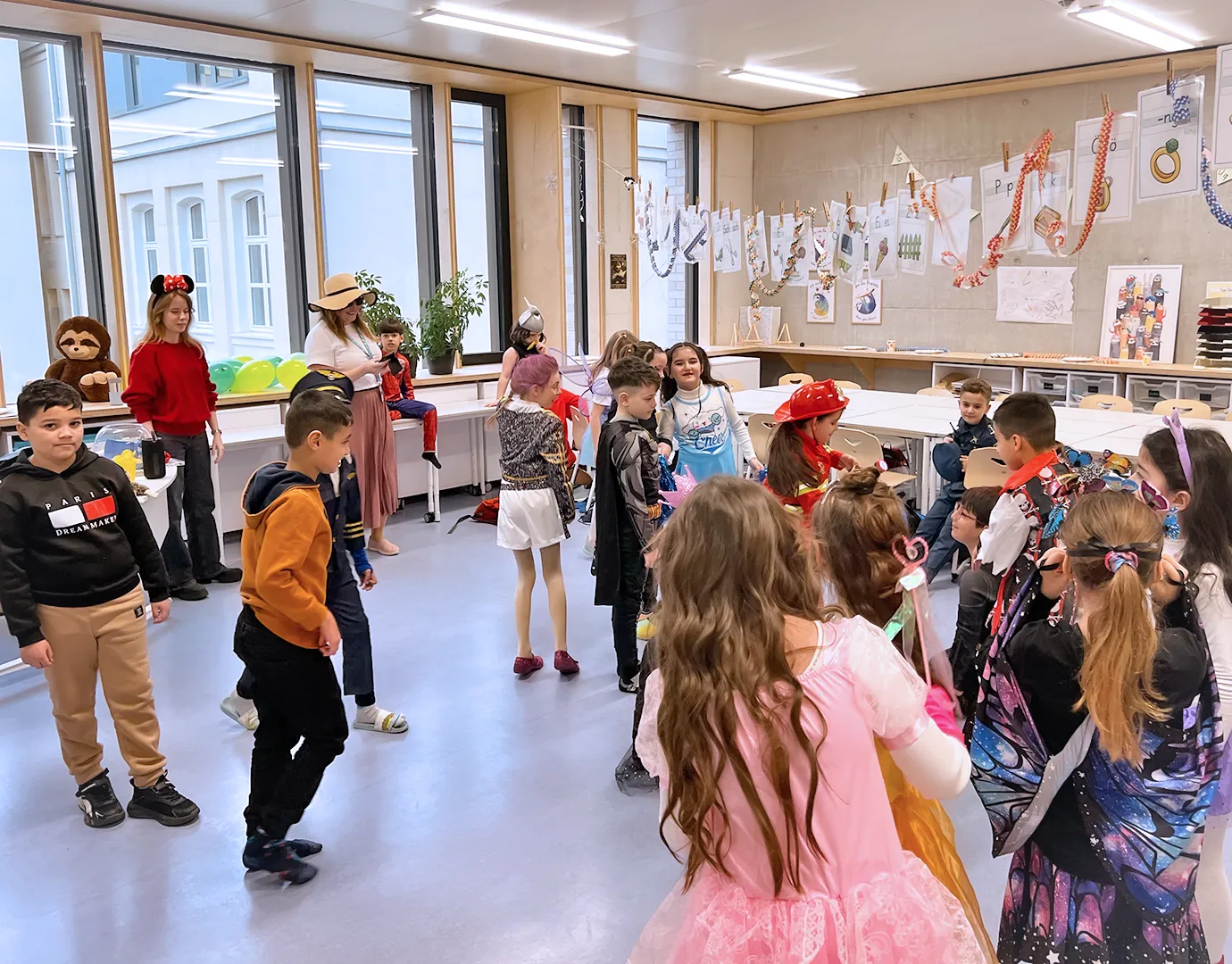 Gefeiert wurde ganz klassisch in den Klassenräumen: „Reise nach Jerusalem“, Stoptanz und Modenschauen standen auf dem Programm. Letztere boten Gelegenheit, die Kostüme gebührend vorzuführen – inklusive Accessoires, Umhängen, Glitzer und gelegentlicher Superkräfte.