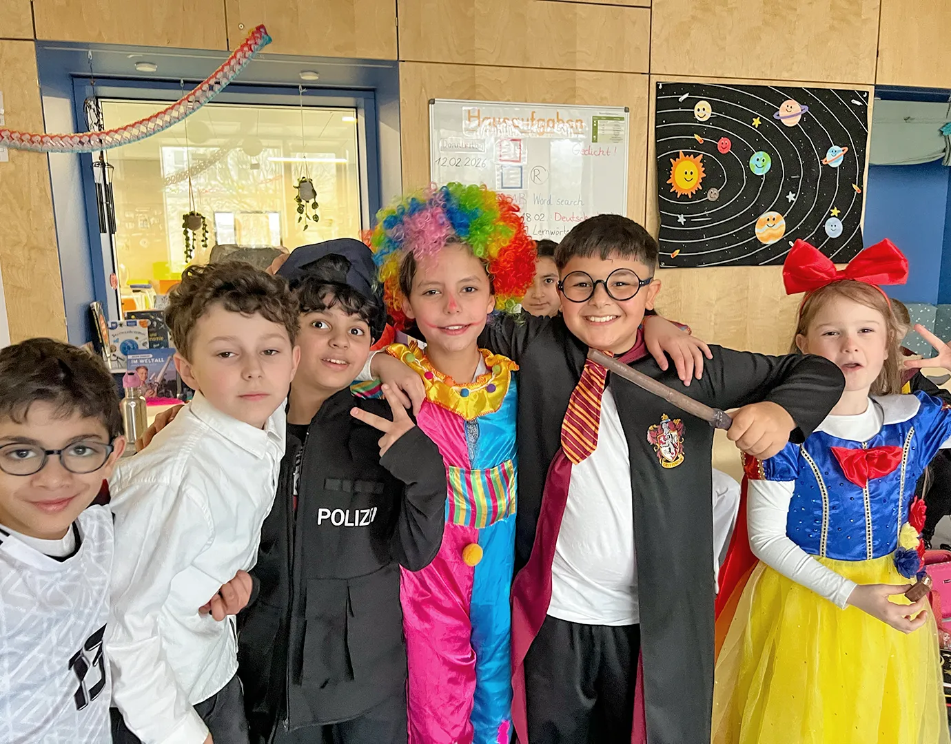 Februar 2026🎭 Karneval 2026 - Wundervoll statt würdevollWie in jedem Jahr ließen sich deutliche Trends der Verkleidekunst bei unserer Karnevalsfeier am Freitag, den 13. Februar ausmachen. Obwohl das Datum eigentlich magische Wesen begünstigt hätte, waren Hexen und Zauberer in diesem Jahr erstaunlich zurückhaltend vertreten – stecken sie noch in der Fortbildung für fortgeschrittene Zaubersprüche? Dafür gab es Superheldinnen und Superhelden in beruhigender Menge. Offenbar ist die Weltrettung weiterhin ein solides Berufsfeld. Auch Polizistinnen und Polizisten waren zahlreich im Einsatz. Ordnung muss schließlich sein – selbst im Konfettiregen. Unterstützt wurden sie von medizinischem Fachpersonal, das im Notfall vermutlich auch Zuckerschocks nach zu vielen Kamellen professionell hätte behandeln können. Royale Hoheiten aus unterschiedlichsten Königshäusern schritten (nicht wirklich würdevoll) durch die Flure, während ein neuer Star unübersehbar seinen Siegeszug antrat: Stitch war in diesem Jahr kaum zu übersehen. Offenbar hat sich das blaue Wesen fest im Kostümrepertoire etabliert.