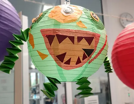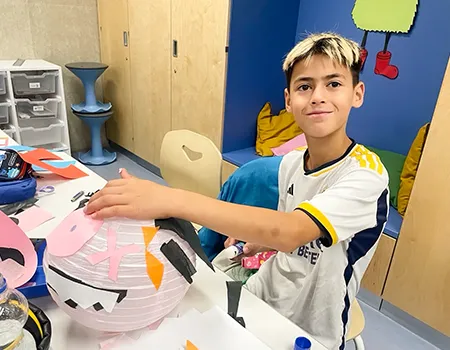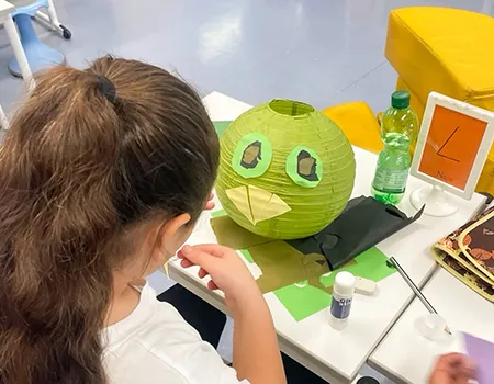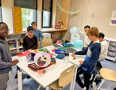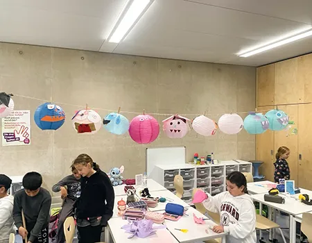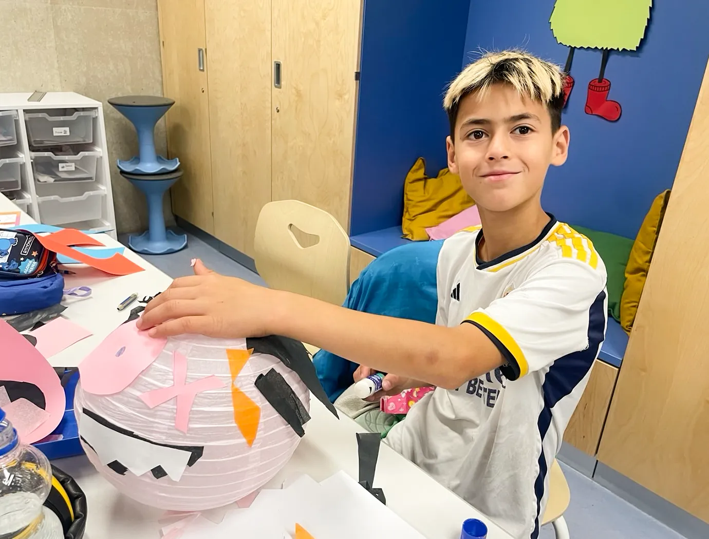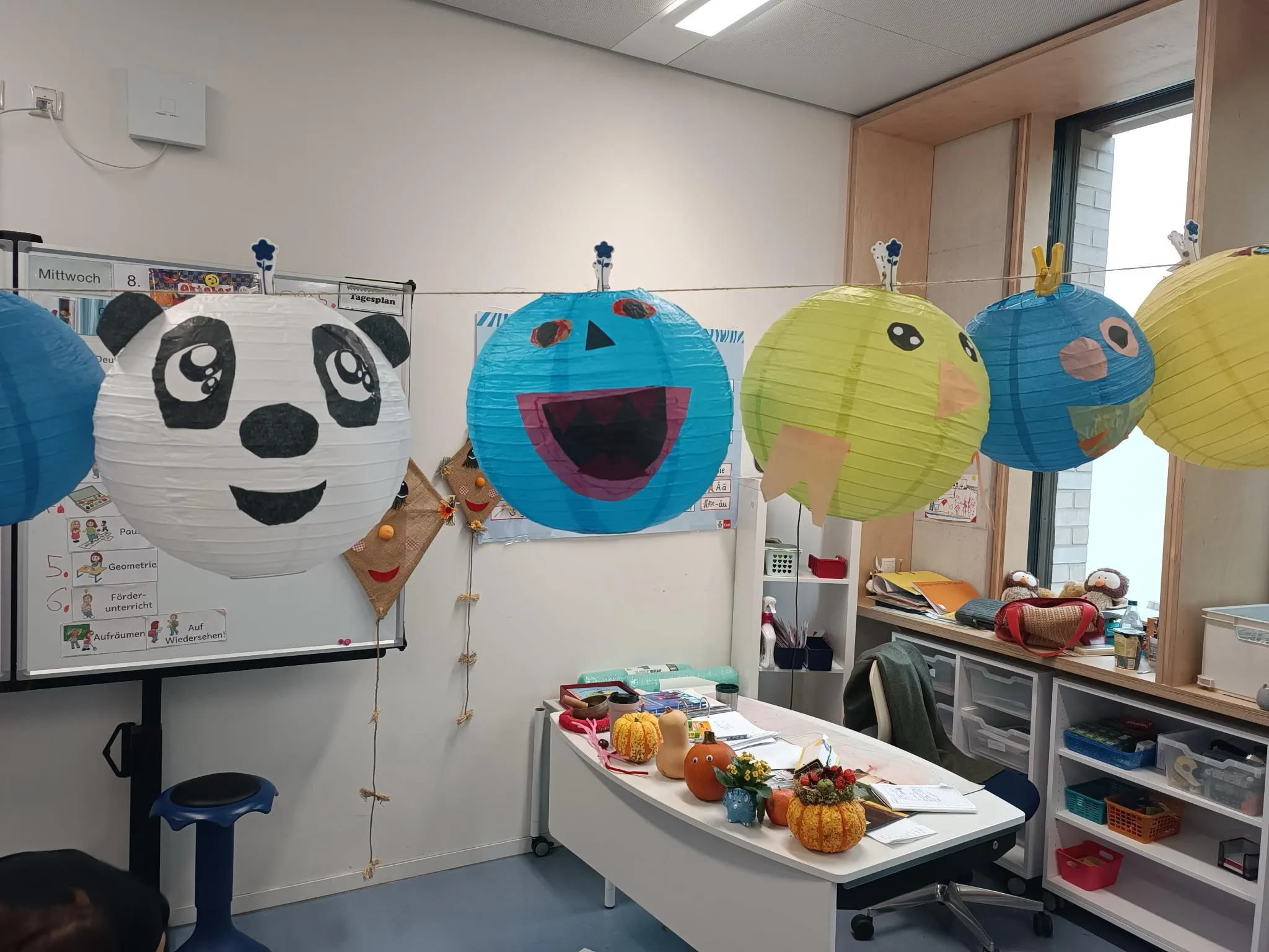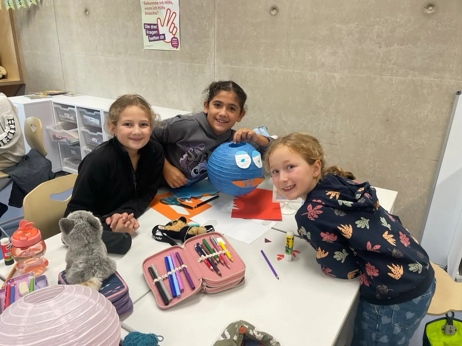 Noch hängt die Deko in der Klasse 3a, aber bald wird sie in der Aula für die richtige Stimmung sorgen – bei der großen Halloweenparty am 7. November!