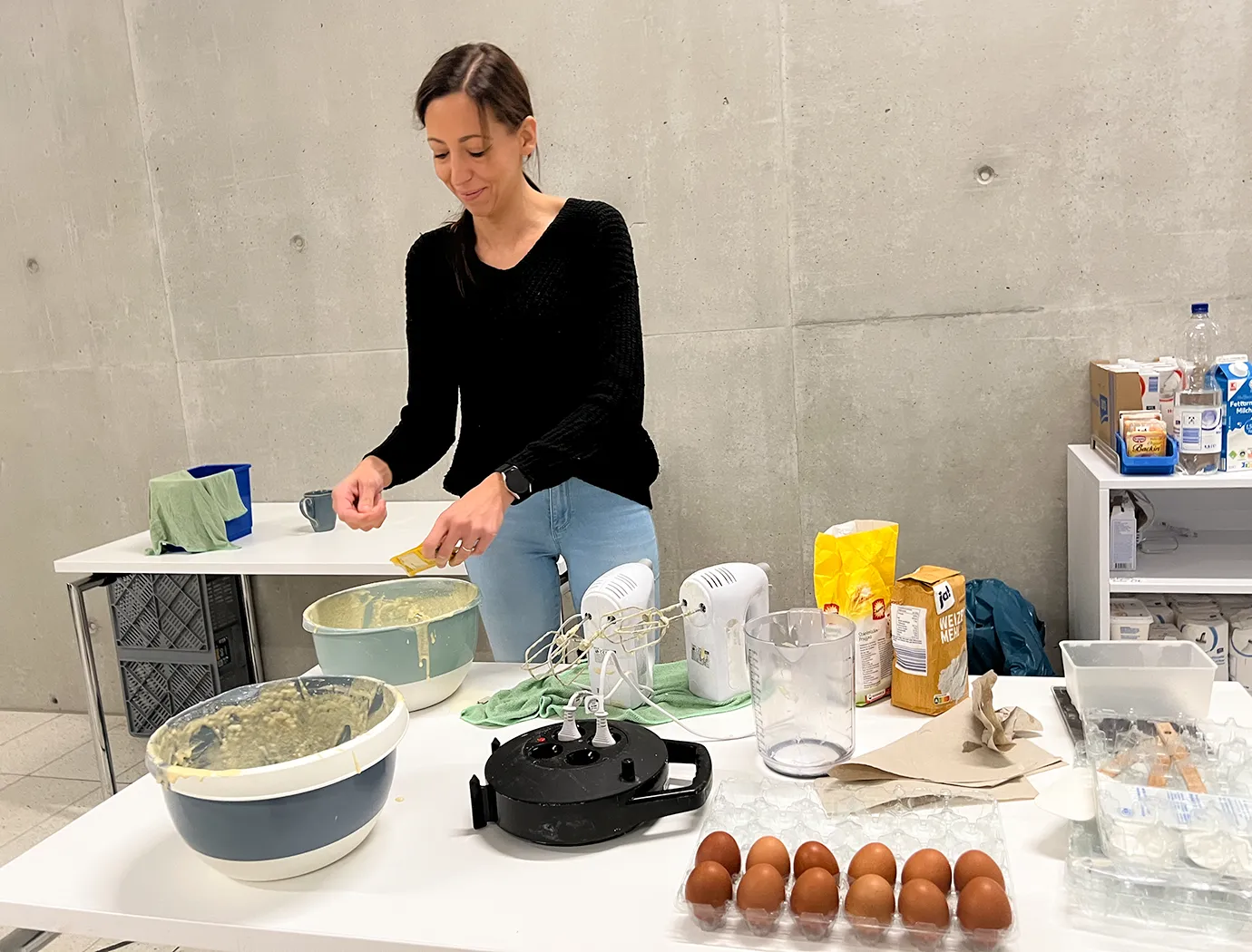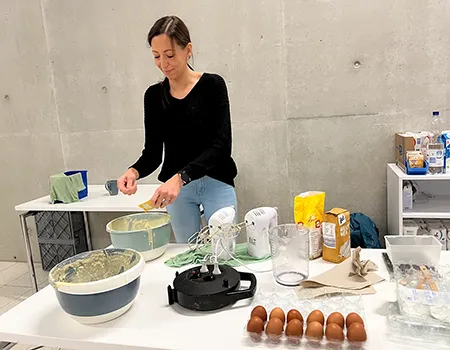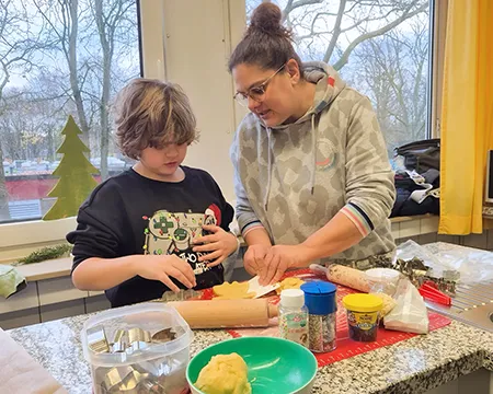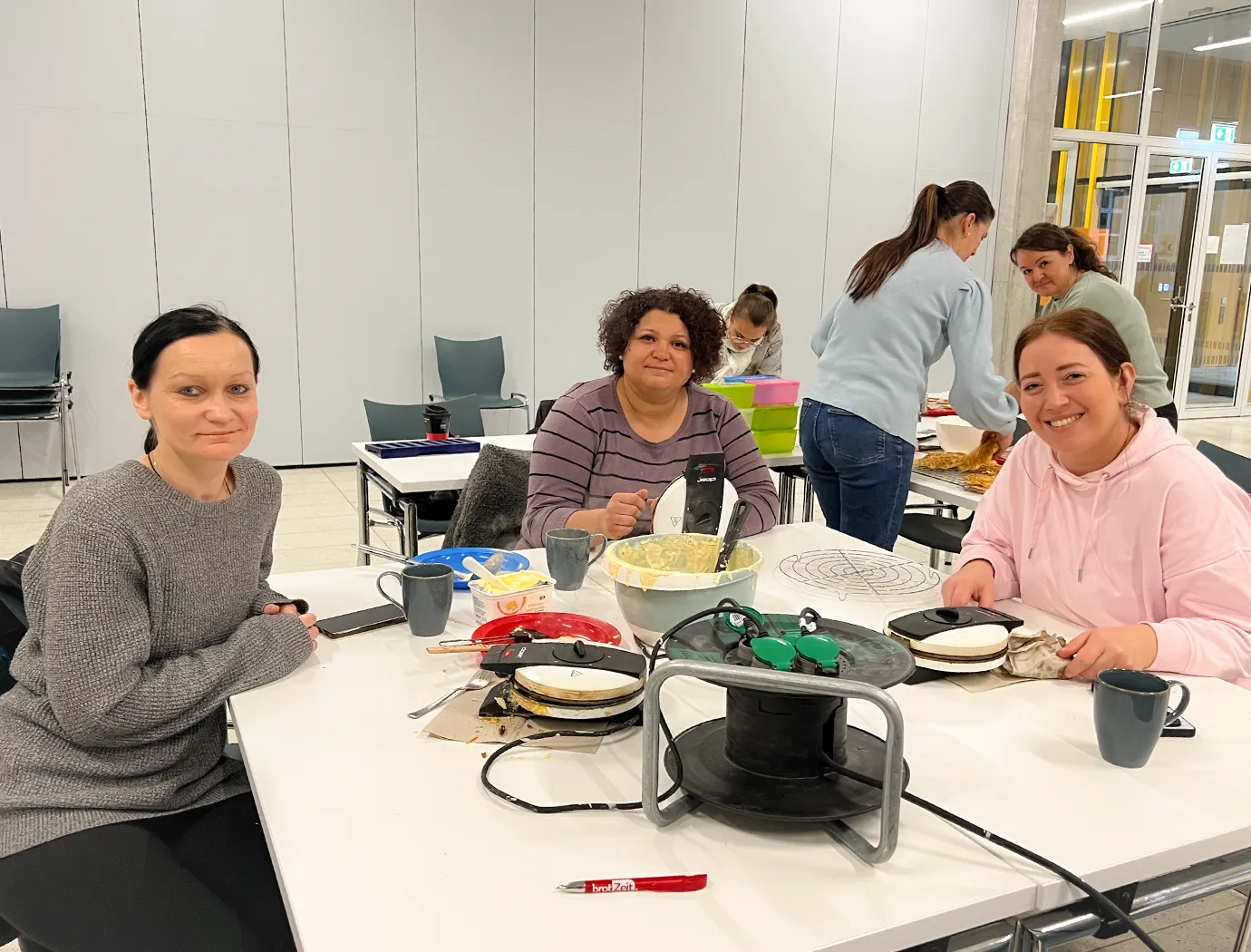 Zwischen Sägemehl und Kürbiskernen blieb auch Zeit für ein Stück Kuchen und eine Tasse Kaffee. Als draußen langsam die Dunkelheit einsetzte, leuchteten die fertigen Kürbisse zur Probe auf dem Schulhof gemeinsam auf.