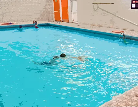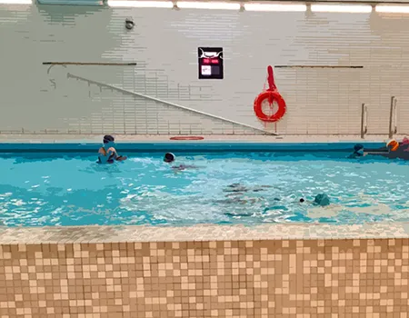 Für einige Kinder der OGS ging es in den Herbstferien jeden Tag ins Schwimmbad, wo nicht nur geplanscht, sondern auch vor allem das sichere Schwimmen und Bewegen im Wasser geübt wurde. Ziel war die Erlangung des Seepferdchen-Abzeichens. Dafür mussten neben der Schwimmprüfung () auch die Schwimmregeln gepaukt werden. Um das Abzeichen zu bekommen, müssen Kinder vom Beckenrand ins Wasser springen, 25 Meter schwimmen – egal in welcher Schwimmart und einen Gegenstand aus schultertiefem Wasser mit den Händen heraufholen.