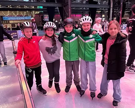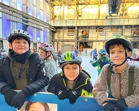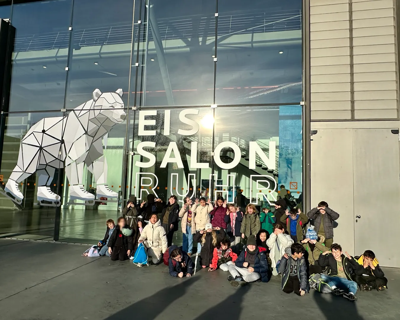 Kinder der Klasse 4b gehen gemeinsam zur Jahrhunderthalle und klettern in dem Hochgarten, spielen auf dem Boden und präsentieren sich in der Klassengemeinschaft.