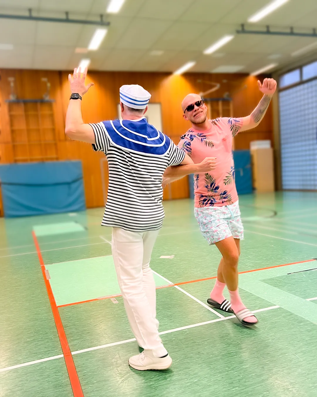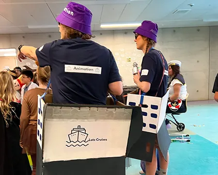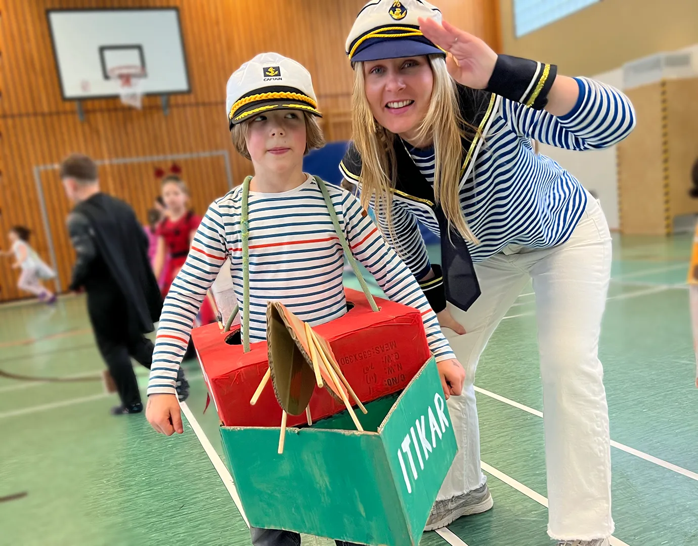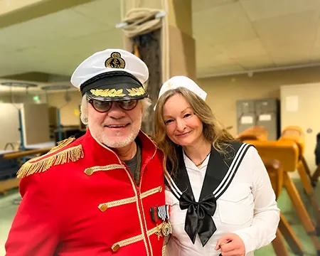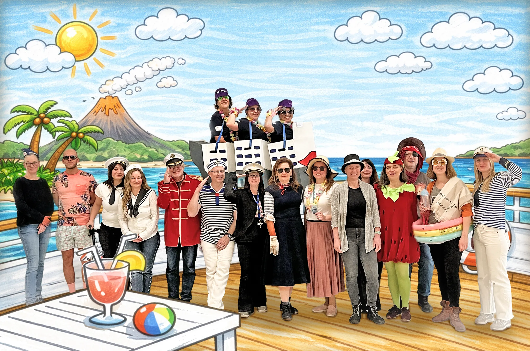 Ein großer Teil des Kollegiums begab sich thematisch auf Kreuzfahrt. Latz Cruises wurde auf den Wellen des Binnenmeeres an der Feldsieper Straße gesichtet – jederzeit bereit zum Ablegen. Matrosinnen und Matrosen, Kapitäne, Bordpersonal und Kreuzfahrtpassagiere sorgten für maritime Akzente zwischen all den Superkräften und Königskronen.