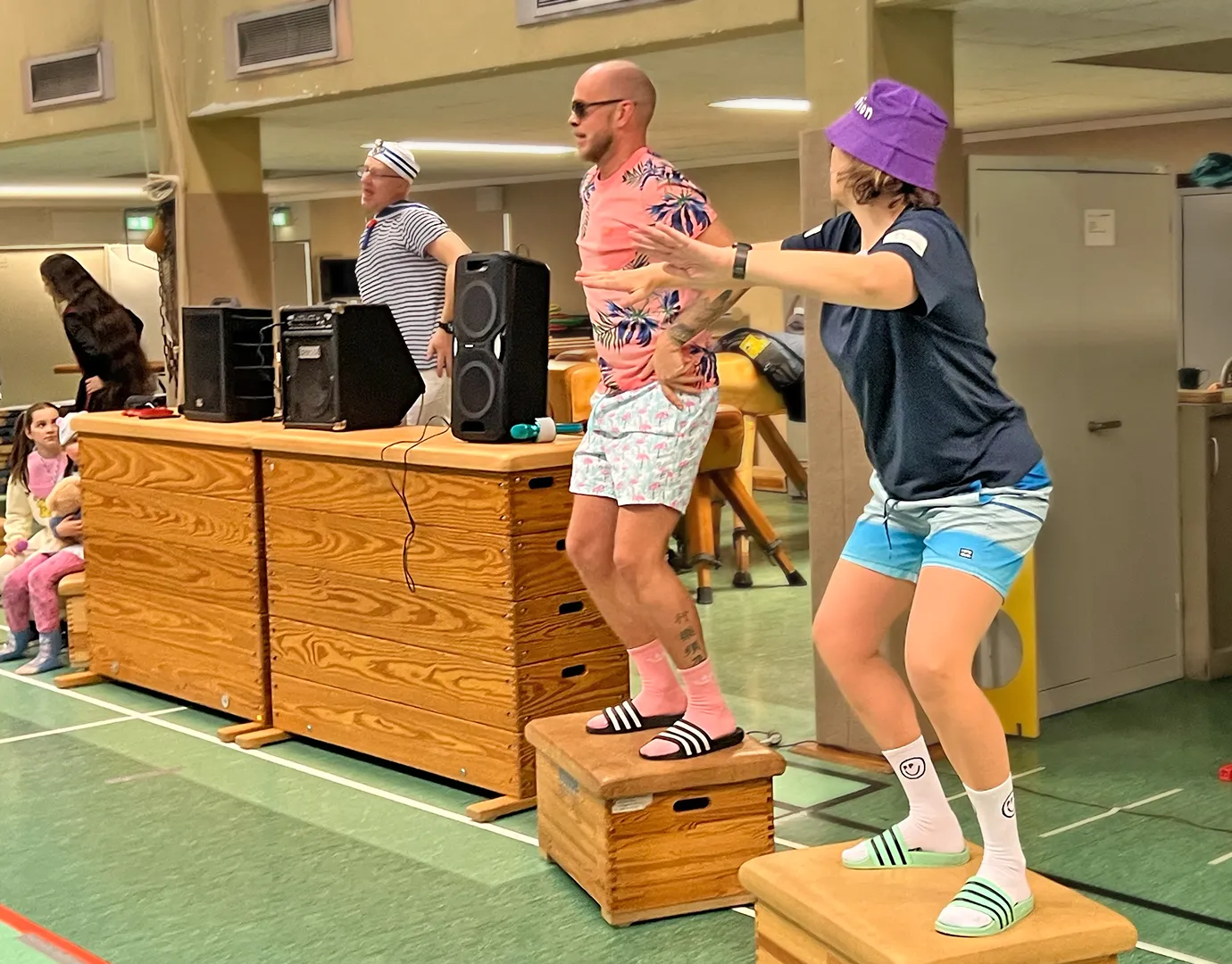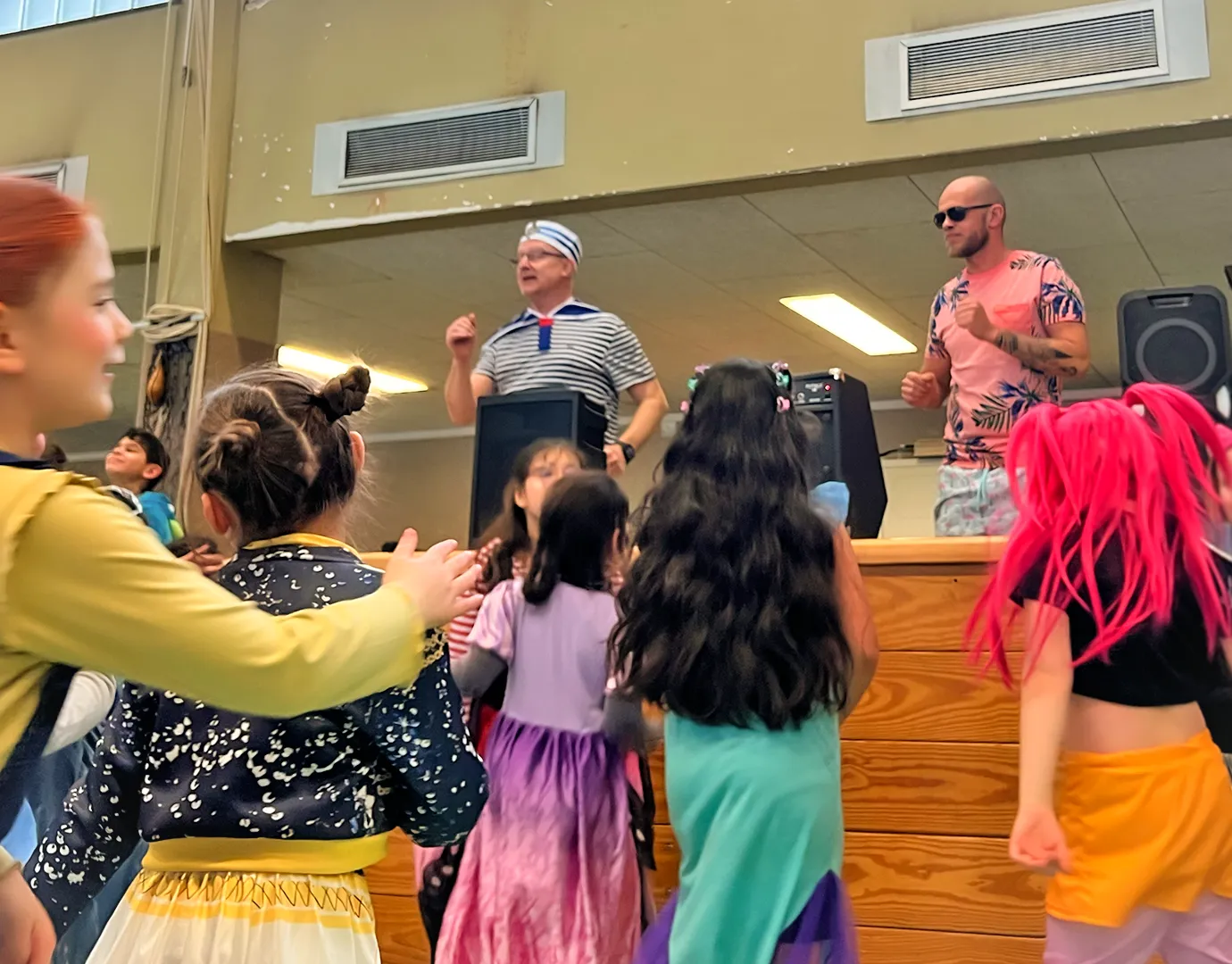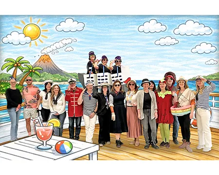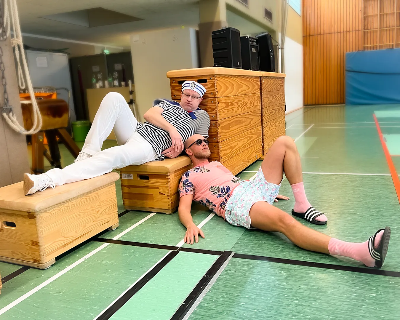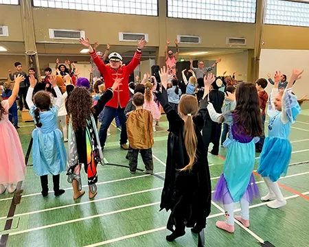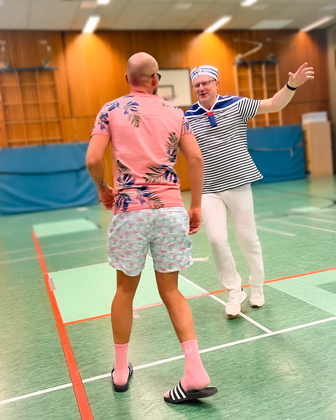 Ein großer Teil des Kollegiums begab sich thematisch auf Kreuzfahrt. Latz Cruises wurde auf den Wellen des Binnenmeeres an der Feldsieper Straße gesichtet – jederzeit bereit zum Ablegen. Matrosinnen und Matrosen, Kapitäne, Bordpersonal und Kreuzfahrtpassagiere sorgten für maritime Akzente zwischen all den Superkräften und Königskronen.