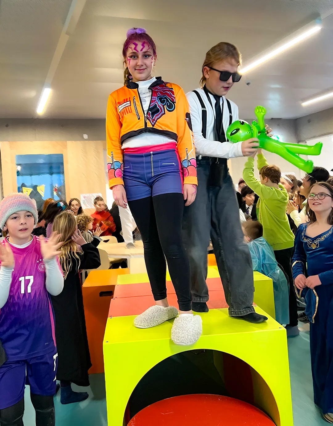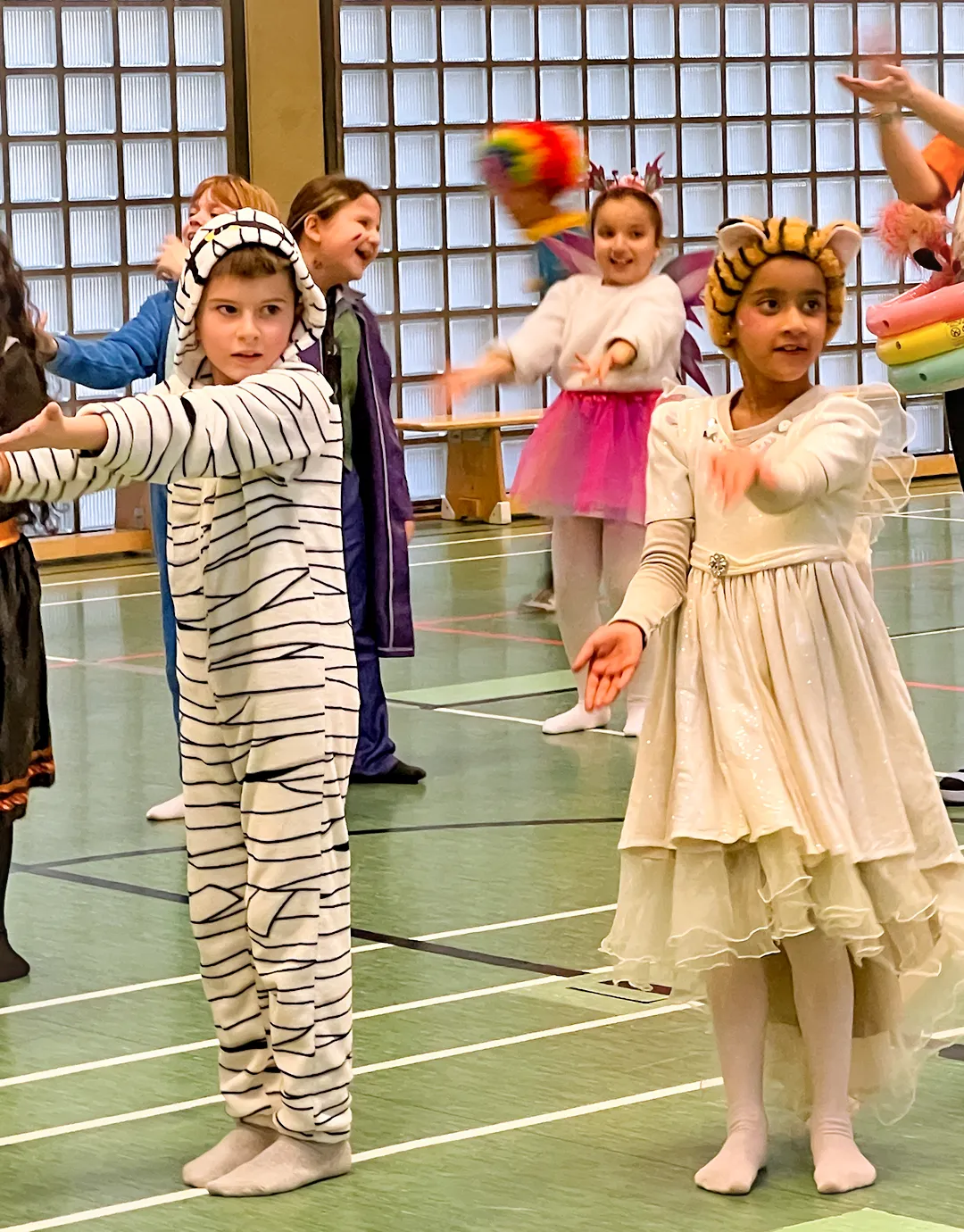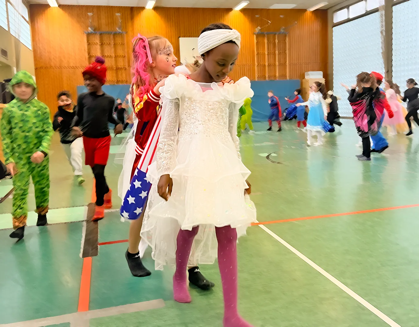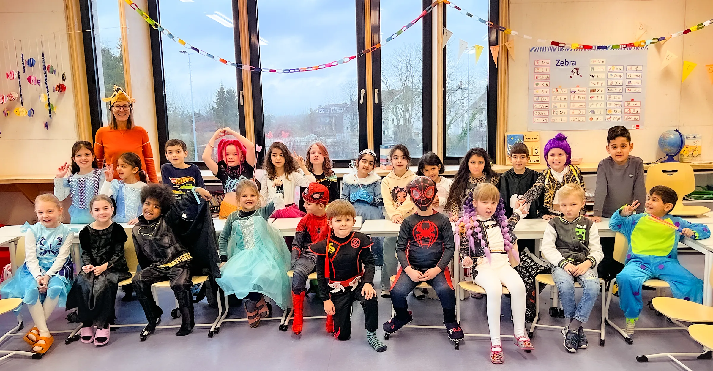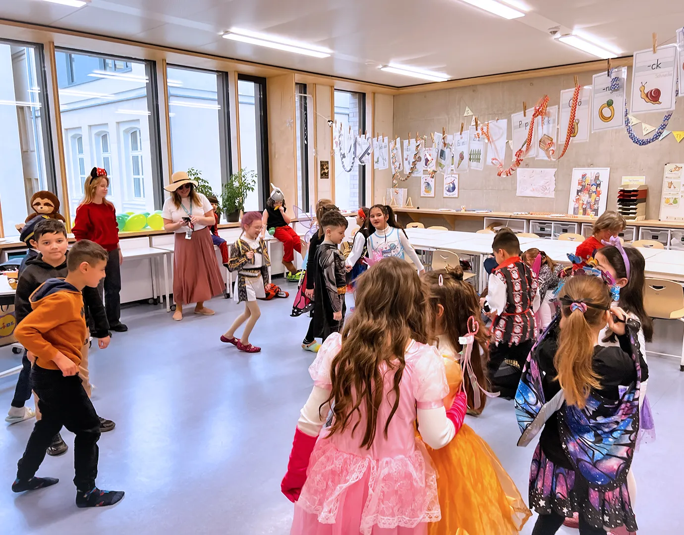 Gefeiert wurde ganz klassisch in den Klassenräumen: „Reise nach Jerusalem“, Stoptanz und Modenschauen standen auf dem Programm. Letztere boten Gelegenheit, die Kostüme gebührend vorzuführen – inklusive Accessoires, Umhängen, Glitzer und gelegentlicher Superkräfte.