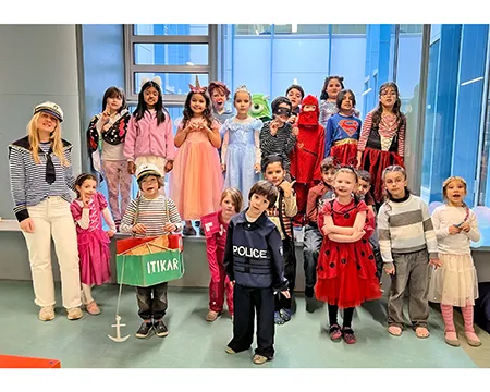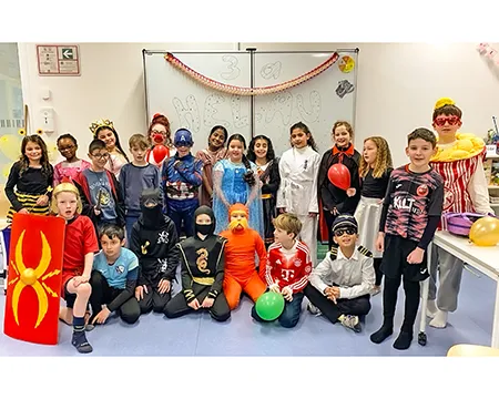 Februar 2026🎭 Karneval 2026 - Wundervoll statt würdevollWie in jedem Jahr ließen sich deutliche Trends der Verkleidekunst bei unserer Karnevalsfeier am Freitag, den 13. Februar ausmachen. Obwohl das Datum eigentlich magische Wesen begünstigt hätte, waren Hexen und Zauberer in diesem Jahr erstaunlich zurückhaltend vertreten – stecken sie noch in der Fortbildung für fortgeschrittene Zaubersprüche? Dafür gab es Superheldinnen und Superhelden in beruhigender Menge. Offenbar ist die Weltrettung weiterhin ein solides Berufsfeld. Auch Polizistinnen und Polizisten waren zahlreich im Einsatz. Ordnung muss schließlich sein – selbst im Konfettiregen. Unterstützt wurden sie von medizinischem Fachpersonal, das im Notfall vermutlich auch Zuckerschocks nach zu vielen Kamellen professionell hätte behandeln können. Royale Hoheiten aus unterschiedlichsten Königshäusern schritten (nicht wirklich würdevoll) durch die Flure, während ein neuer Star unübersehbar seinen Siegeszug antrat: Stitch war in diesem Jahr kaum zu übersehen. Offenbar hat sich das blaue Wesen fest im Kostümrepertoire etabliert.