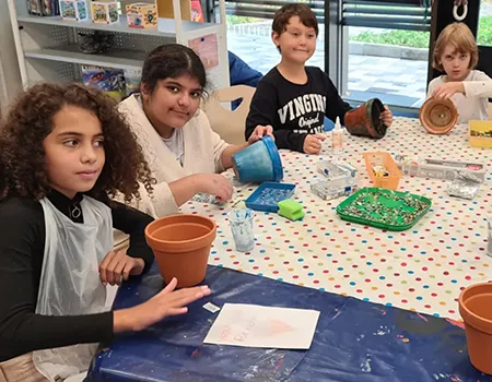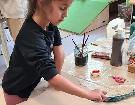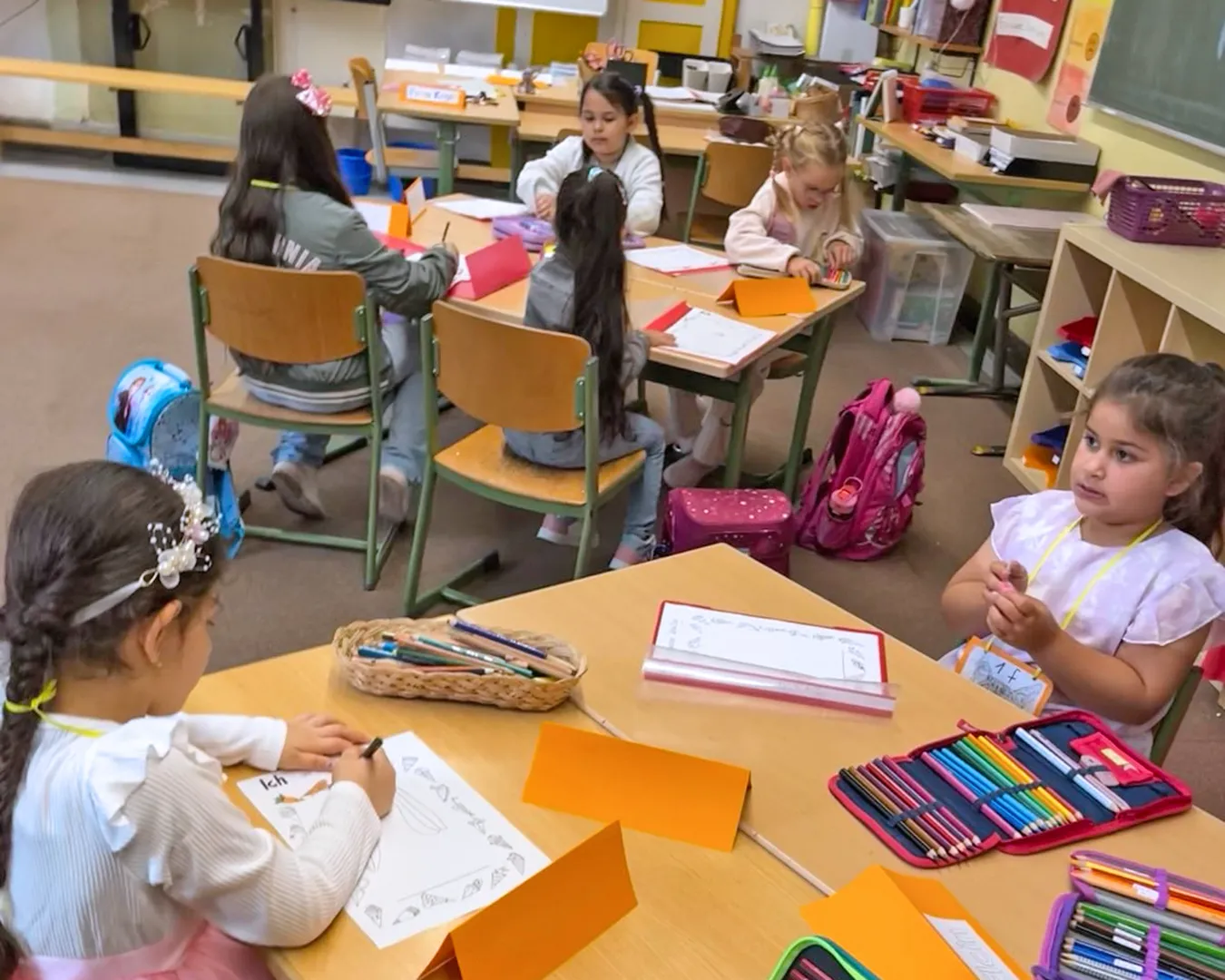 Noch hängt die Deko in der Klasse 3a, aber bald wird sie in der Aula für die richtige Stimmung sorgen – bei der großen Halloweenparty am 7. November!