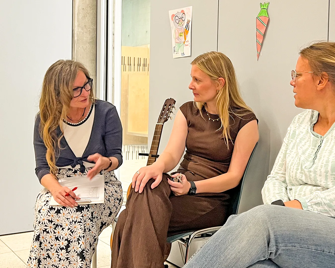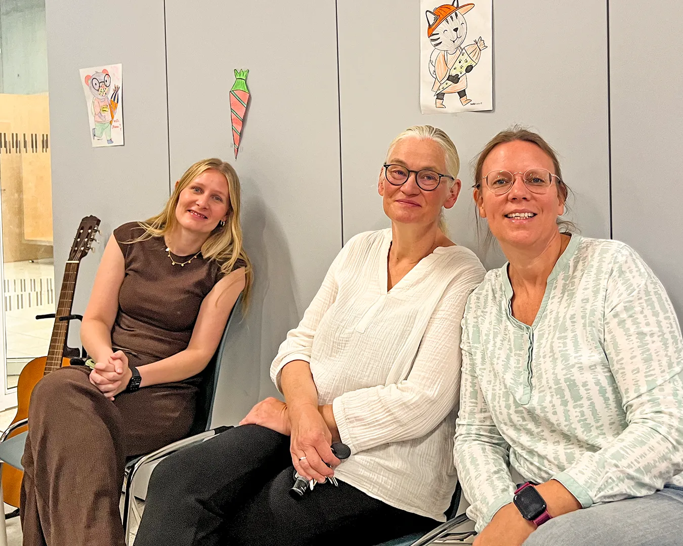 Köpfe mit grob gezackten, schiefen Zähnen, schielenden Augen und reichlich Fantasie hängen im Klassenraum der Klasse 3a.