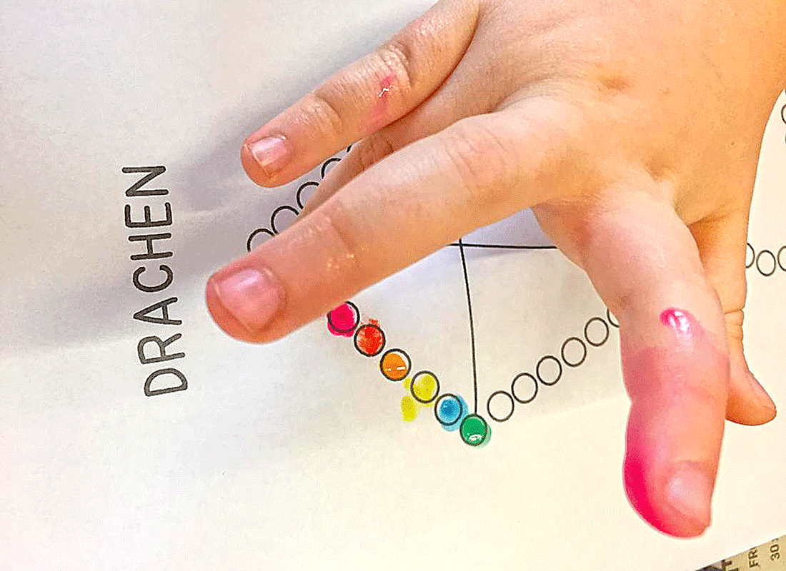 Dann wurde ein Finger in das Farbtöpfchen getunkt und anschließend