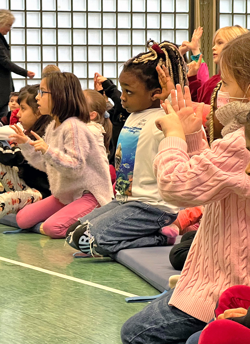 Ein Nikolaus kam in unserer Turnhalle an der Feldsieper Str. vorbei geflogen und erzählte den Kinder wundersame Geschichten. Wie es sich für einen Nikolaus gehört, brachte er auch einen großen Sack mit, aus dem er nach und nach so Einiges hervorzauberte. Jedes der zum Vorschein gebrachten Gegenstände wurde genau betrachtet und gemeinsam mit den Kindern hinsichtlich seiner Funktion näher untersucht. Die Zuschauerinnen hatten viel Spaß beim Kommentieren, Rufen, Bewegen und Gestikulieren und machten begeistert mit.