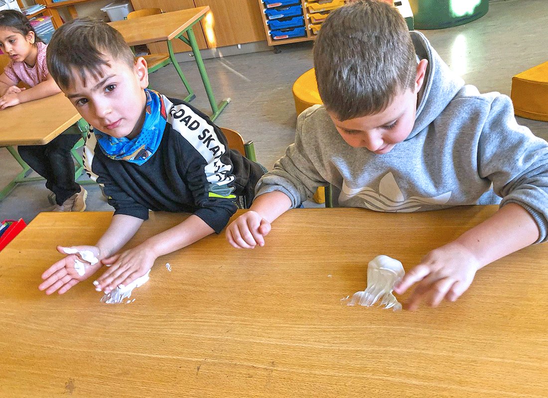 ihrem großen Vergnügen selbst ausprobieren. Sie bekamen jeweils einen kleinen Klecks