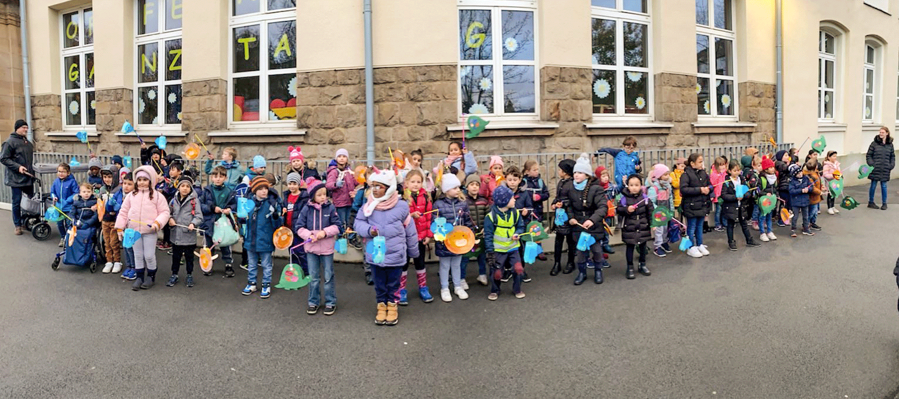 zu einem Laternenumzug wieder nach draußen. Anschließend konnten die Kinder in den Klassen Martinsbrezel genießen.