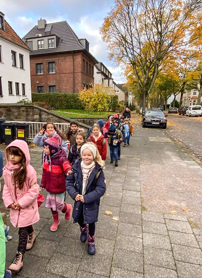 Einem Herbstfest kam die Herbstwoche der ersten Klassen, die ihre Klassenlehrerinnen Frau Büschke, Frau Czarnetzki und Frau Ciesilski mit ihnen in der zweiten Novemberwoche durchgeführt haben, schon recht nah. Die Woche begann mit einem Herbstspaziergang in den Stadtpark,