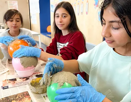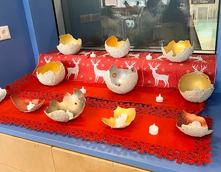 Für die Lichterschalen wurde zunächst ein Luftballon aufgeblasen und vorsichtig eingeölt, damit später nichts festklebt. Dann kam der Bastelbeton ins Spiel: gleichmäßig aufstreichen, Ränder glätten, trocknen lassen. Nach dem Aushärten wurde der Ballon behutsam entfernt – und zum Vorschein kam eine stabile, feinporige Innenseite der entstandenen Schale. Zum Schluss erhielt das Innere noch eine Schicht aus Gold- oder Silberfarbe. So entstand ein reizvoller Kontrast: außen kühl und rau, innen glänzend und warm.