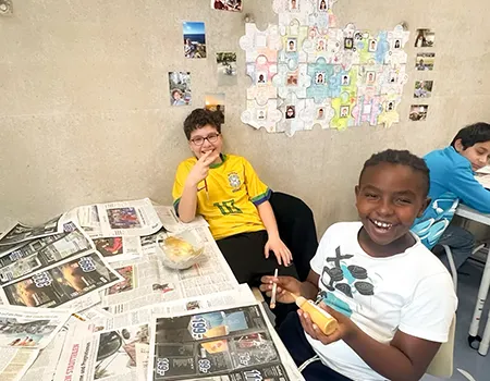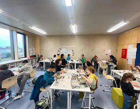 Die Klassen hatten sich verschiedene Aufgaben vorgenommen: Während die 1e für frischen Nachschub im Schulgarten sorgte und Beete vorbereitete, baute die 1f aus Zweigen, Laub und Holz Unterschlüpfe für Insekten und kleine Tiere. In den zweiten Klassen wurde aus „Müll“ Schönes: Die 2d verwandelte Verpackungen in farbenfrohe Herbstdekoration, die 2e sammelte fleißig Abfall auf dem Schulgelände und drum herum. Auch die Drittklässler waren kreativ – die 3d und 3f legten kunstvolle Mandalas aus Naturmaterialien, während die 3e mit Ton und gesammelten Fundstücken kleine Kunstwerke formte. Die vierten Klassen, 4d und 4e, nahmen das Thema Upcycling wörtlich und konstruierten aus leeren Toilettenpapierrollen ausgeklügelte Murmelbahnen.